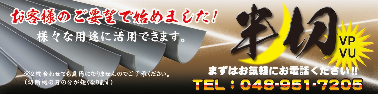 クリアー(透明)VP/VU管 たて割(半割) 価格表